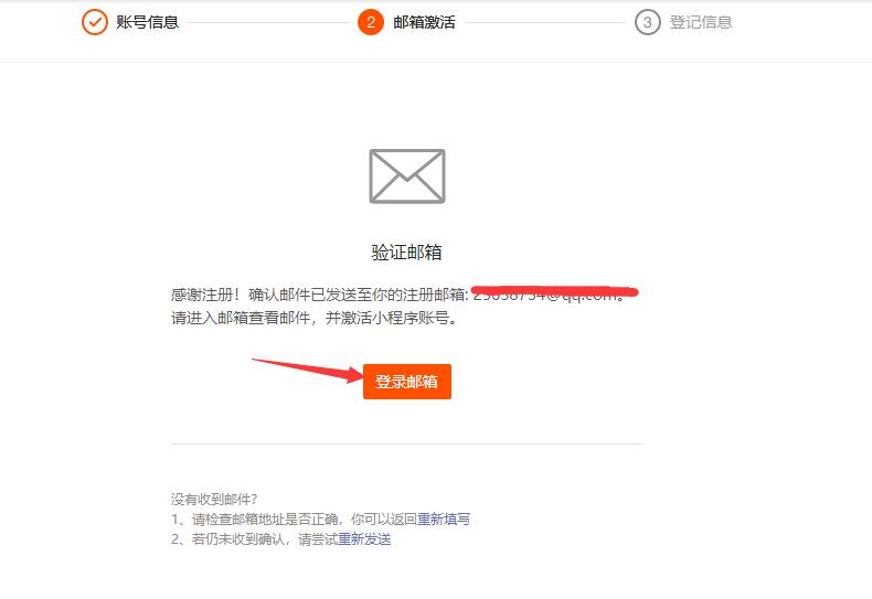點擊登錄郵箱,系統(tǒng)會發(fā)送一封激活郵件到所填寫的郵箱賬號,點擊郵件中的鏈接,跳轉(zhuǎn)至“登記信息”頁面。