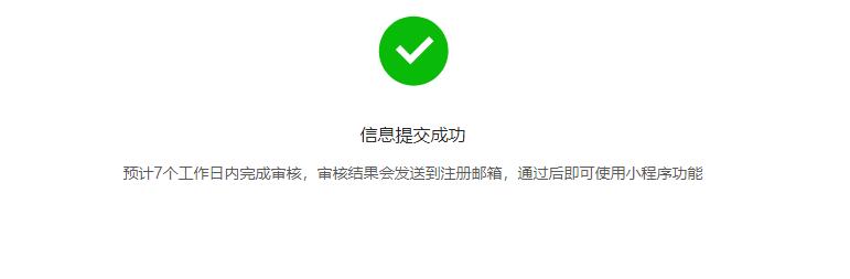 信息提交成功,7個工作日內(nèi)完成審核,審核后,即可使用小程序功能。