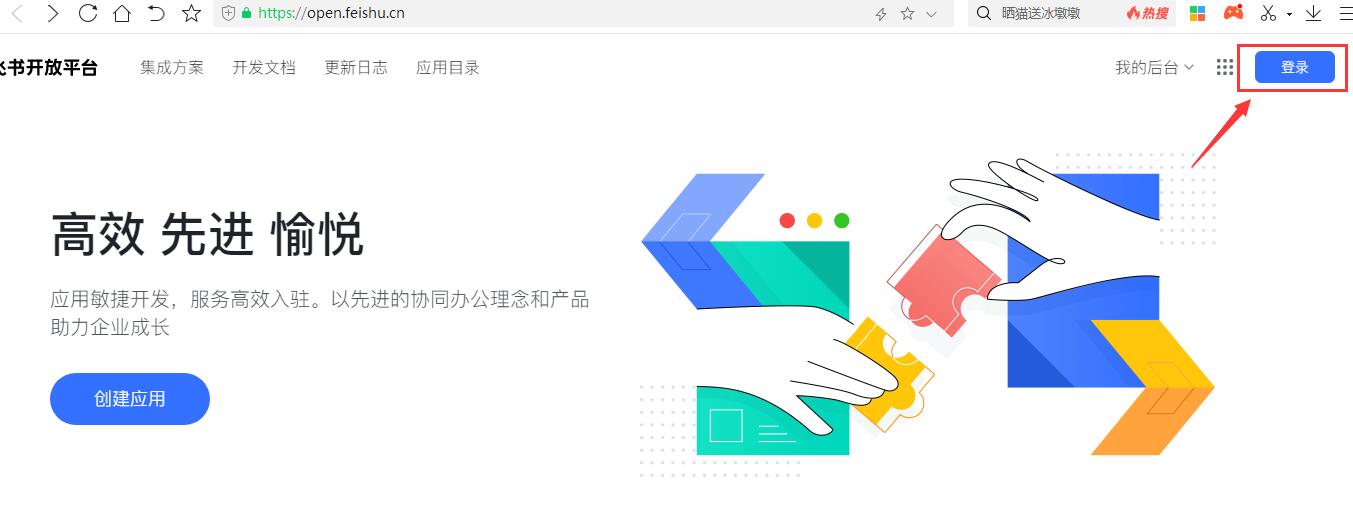 (1)登錄飛書小程序官網(wǎng) https://open.feishu.cn/  點擊右上角“登錄”,“立即注冊”,進行帳號注冊。